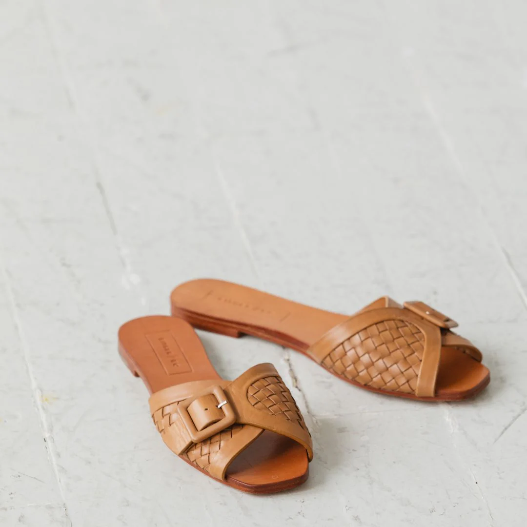 Vintage inspired with a leather-wrapped buckle, this gorgeous artisan woven upper transports you to San Tropez. We love this handwoven sandal with jeans for everyday or elevate your summer prints with a super polished sandal.