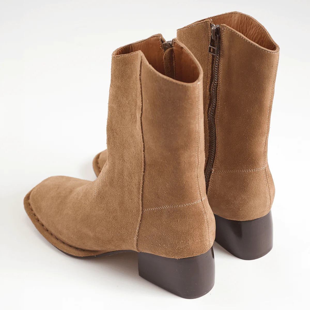 A very cool new take on western. Square toe with handmade stitched welt detail -- all in super soft naturally tumbled leather or soft suede.